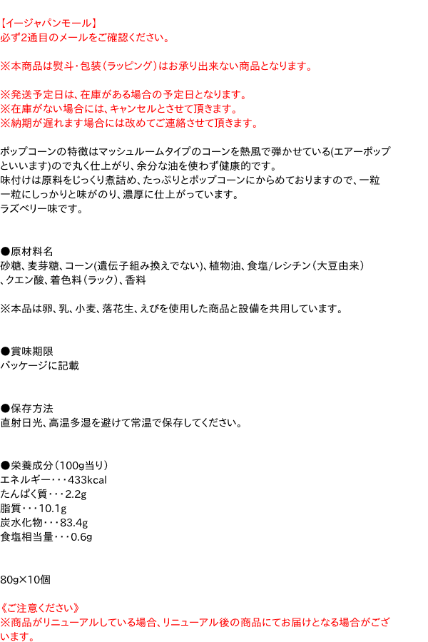 [関連キーワード:お菓子 おやつ スナック スナック菓子 ポップコーン とうもろこし フレーバー らずべりー味]【イージャパンショッピングモール】内のみのお買い物は、送料一律でどれだけ買っても同梱する事が出来ます。
